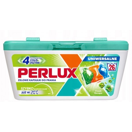 Kapsułki żelowe PERLUX UNIVERSAL Fresh Escape przeznaczone są do prania ubrań białych, jasnych i kolorowych. Zawarte w kapsułkach naturalne olejki eteryczne, nadają praniu długotrwałą świeżość i subtelny, przyjemny zapach.