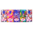 W kolorowym opakowaniu znajdziemy dziesięć paczuszek, a w każdej z nich dziewięć miękkich, nie podrażniających skóry chusteczek.
