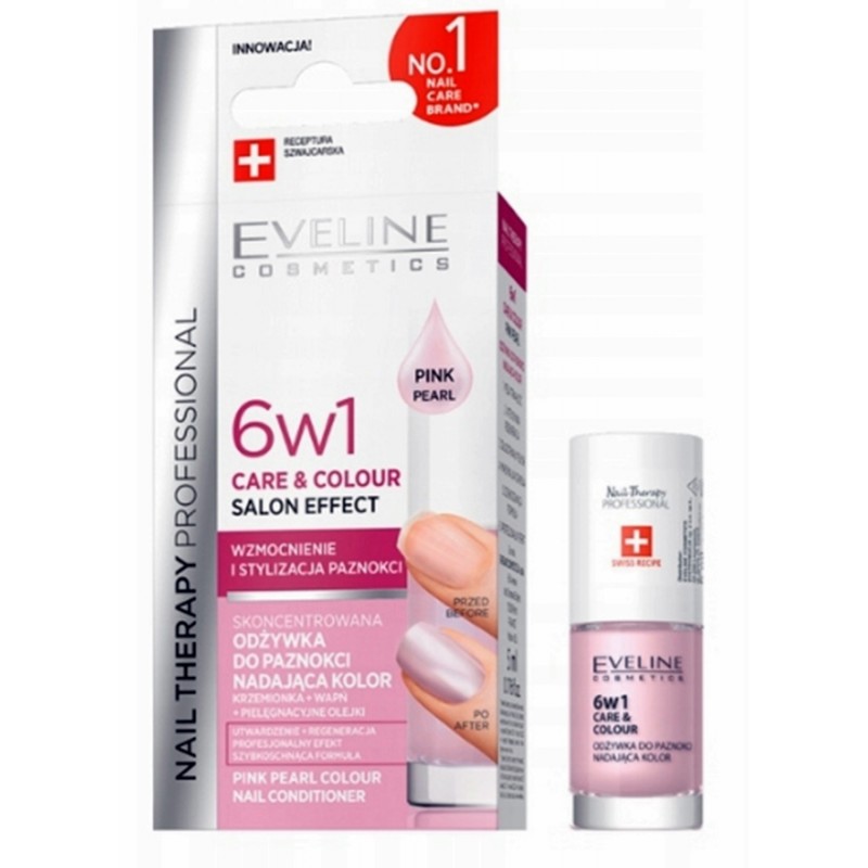 Skoncentrowana odżywka do paznokci Eveline Nail Therapy 6w1 zawierająca kompleks Colour & Double Strong™ wnika w strukturę paznokcia, dzięki czemu zawarte w niej krzemionki, wapń i pielęgnacyjne olejki dogłębnie odżywiają, zapewniając skuteczną pielęgnację. Lakier chroni przed uszkodzeniami mechanicznymi, odpryskiwaniem i ścieraniem. Szybko schnie i zapewnia długotrwały efekt, jak z profesjonalnego studia!
