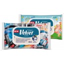 Opakowanie ma wygodne zamknięcie z klapką, która zabezpiecza produkt przed wysychaniem. W środku znajdują się 48 miękkie listki papieru nawilżanego Velvet.